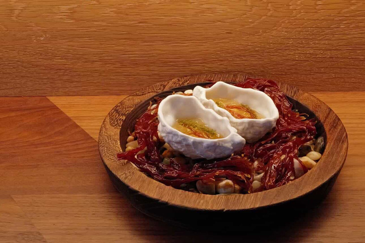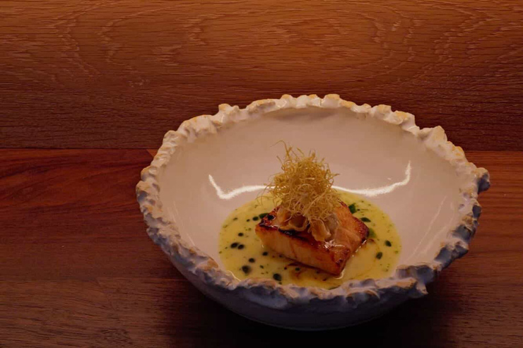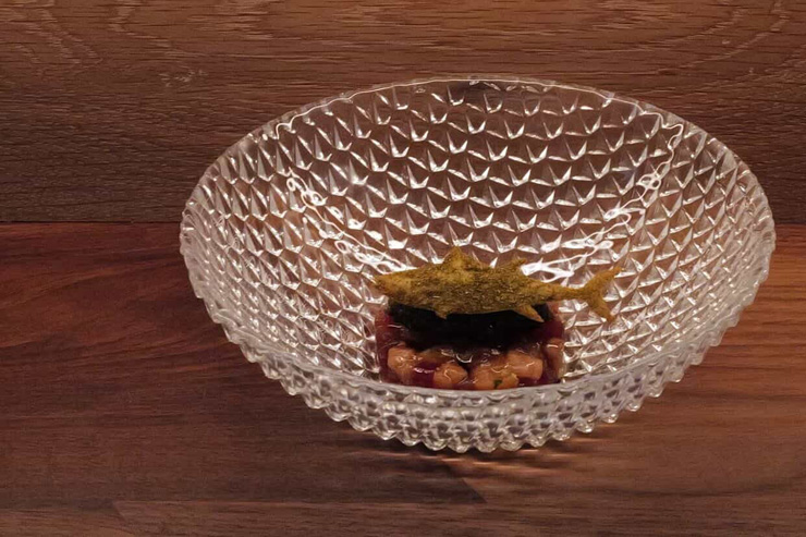 カウンター席のみのダイニングコンセプトを持つ同店では、10〜12品ほどで構成される季節のコース料理。その時期に手に入るベストな食材を使うため、メニュー内容はシーズンごとに変わるのが特徴です。