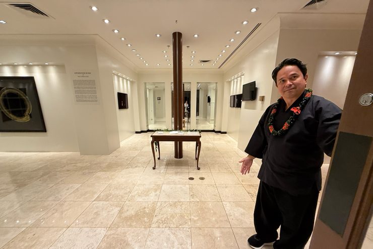 イベント当日は、スパの見学に加え、ハワイ在住のマルチアーティスト、武道家、教師として活動するレイ・カーブリドーさんによる美術展のツアーも行われました。ホテルの1階で開催されています。
