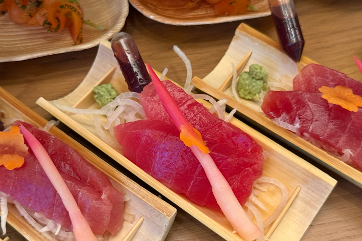 アヒマグロの刺身($32)やサーモンのグラブラックス・タルティーヌ($28)など7種類のププに加え、2種類のデザート、カクテル、モクテルが楽しめます。