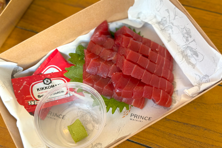 そのほかにも、卵、トンカツ、ステーキの3種類のサンドイッチがセットになった「サンド・トリオ・コンボ($25)」や、ハワイ産マグロを盛り合わせた「フレッシュ・アヒ・刺身($20)」など、お酒のお供にぴったりなメニューがそろいます。