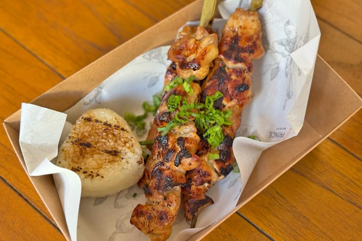なかでも注目は、焼き鳥3本と焼きおにぎりがセットになった「焼き鳥&焼きおにぎりコンボ($15)」です。