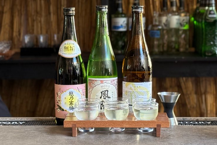 日本酒好きの方には、鳳陽「マナムスメ」、出羽桜「オカ」、越乃寒梅「無垢」の3種類が味わえる「酒フライト($20)」もおすすめです。