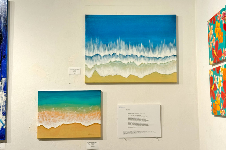 日本、アメリカ、ハワイという異文化の交差点で育まれた感性を背景に、ハワイ古来の精神性である「Mālama ʻĀina(大地を想う心)」を、抽象表現や自然を題材にした作品を通して表現。