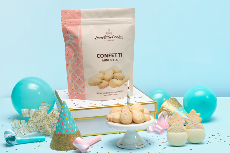 ハワイで愛され続ける「ホノルル・クッキー・カンパニー」。4月のフレーバー「コンフェッティ」と、新作のフローラルレイ・コレクションをご紹介します。
