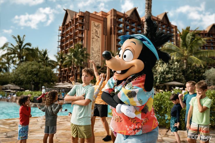 ここでは、ハワイらしい衣装をまとったディズニーキャラクターたちに会えるのも大きな魅力です。しかも、ただ写真を撮るだけではなく、プールサイドのイベントや朝食、キッズ向けアクティビティなど、キャラクターとふれあえるチャンスがリゾート内のあちこちに用意されています。