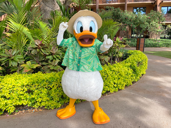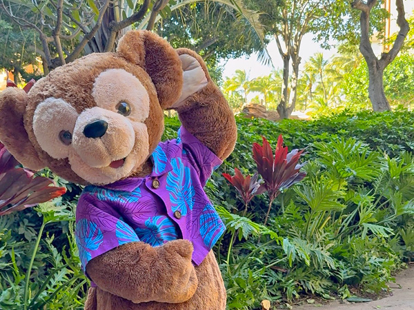 アロハシャツやムームーなどのアウラニ限定衣装に身を包んでいたり、ハワイのハンドサイン「シャカポーズ」をしてくれたりと、ここでしか見られない“ハワイアン・スタイル”の姿に出会えます。