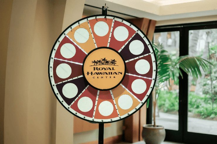 レシート合計で$500以上購入のお客様を対象に、 抽選で$100分のギフトカードやオリジナ ルグッズなどが当たる「ロイヤル・プライズホイール」 を実施。 4階建ての開放的な雰囲気のフロアには、110店以上の高級ブランドやハワイならではのユニークなショップやレストランが勢ぞろいしているので、ぜひ食事や買い物をして同キャンペーンに参加してみてくださいね。
