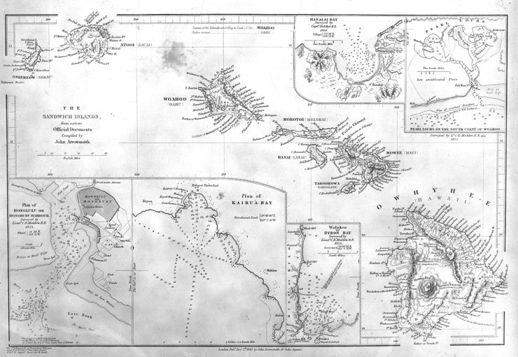 イギリスで1838年に作られた地図。まだサンドイッチ諸島の名が残っている。Photo Courtesy of Hawaii State Archives