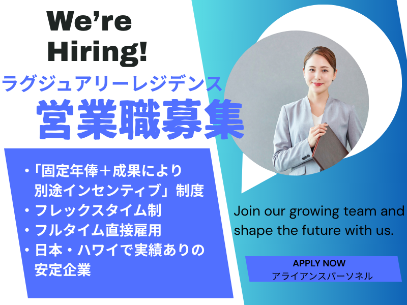 - ハワイを中心に富裕層向け不動産仲介サービスを提供する会社から、「ラグジュアリーレジデンス」営業職募集中!