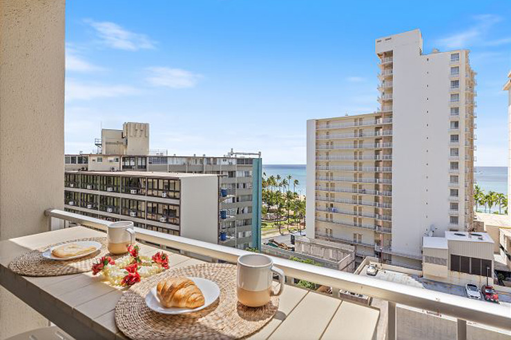 ワイキキ東側にあるトレードウィンズ・プラザの最上階にある角部屋は、2025年に全面改装。モダンで快適性を重視した設計で、日本式のお風呂も。インテリアもこだわり満載で、ゆったりと過ごせる空間です。