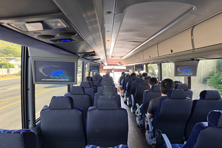 自然保護区に指定されているハナウマ湾では、入場時に環境保護のための教育ビデオ視聴が義務付けられていますが、ツアーの移動中に車内でこのビデオを事前に見られるため、到着後すぐに入場が可能。ハワイ旅行の貴重な時間を最大限に使えます。