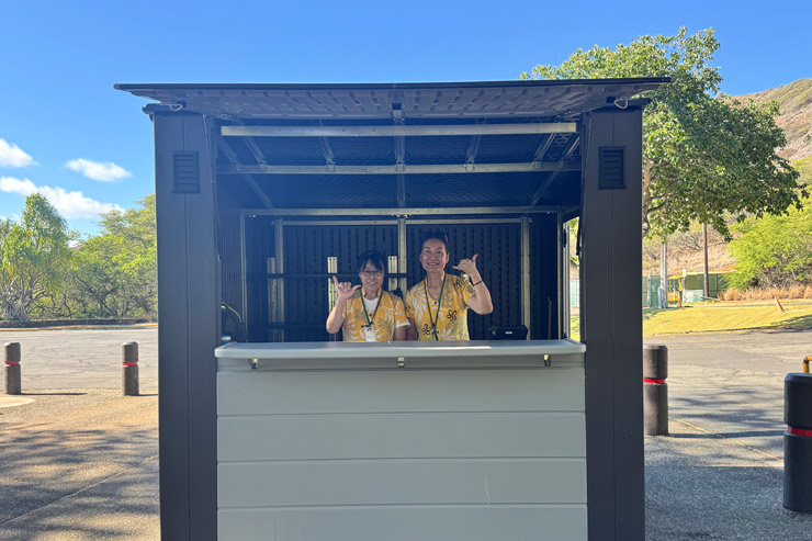 送迎に使われるのは、環境にやさしいEVバス。荷物や駐車場の心配をせず、ストレスフリーに移動ができます。ハナウマ湾現地にスタッフが常駐するキオスクもあるので安心してツアーが楽しめるのも魅力。