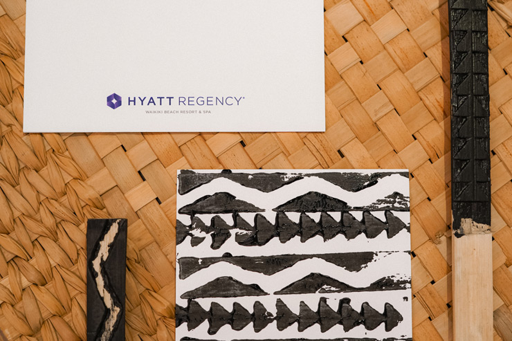 スタッフが作成したハワイ伝統の模様の竹製スタンプを使って、自分だけのポストカードが作れます。ハワイの自然に着想を得た柄にはそれぞれ意味があるので、インストラクターに聞いてみてくださいね。