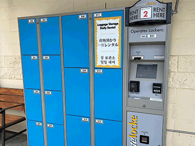 ワイケレ・プレミアム・アウトレット内には、荷物を預けられるロッカーが設置されています。利用する時はロッカー横のキオスク端末で手続きし、支払いはクレジットカードまたは現金で。日本語対応しているため、初めての方でも安心して利用できます。